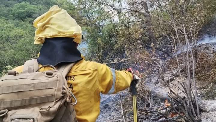Con 45° de temperatura en el lugar, integrantes de la Brigada de Lucha contra Incendios Forestales se encuentran trabajando arduamente desde horas de la mañana en un incendio en la localidad de Huaycama.