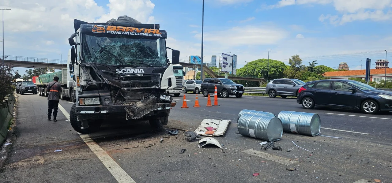 Tres camiones y un auto protagonizaron un choque múltiple en avenida Cantilo y tres personas resultaron heridas, una de las cuales fue derivada al hospital Pirovano.