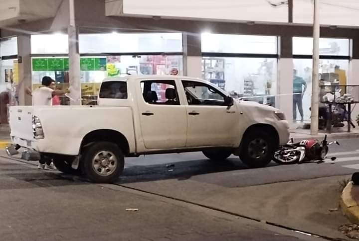 Por causas a determinar, una camioneta Toyota Hilux embistió a un motociclista.