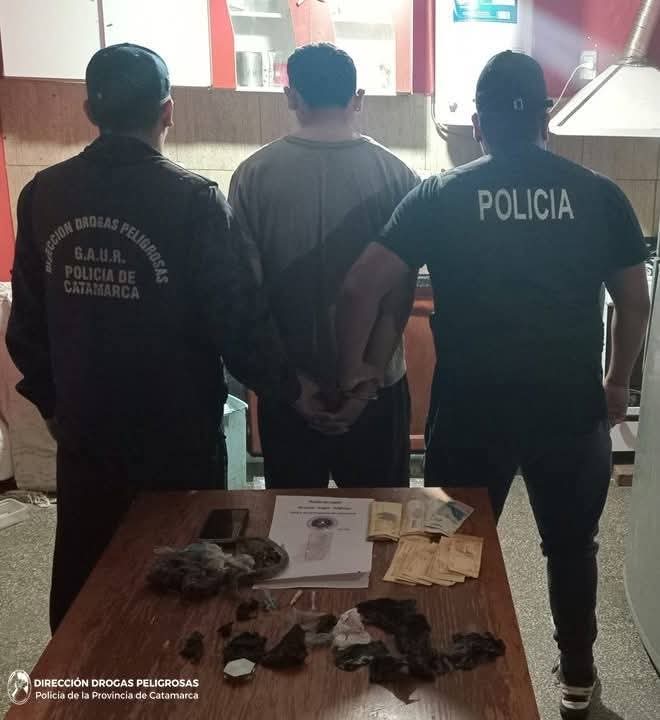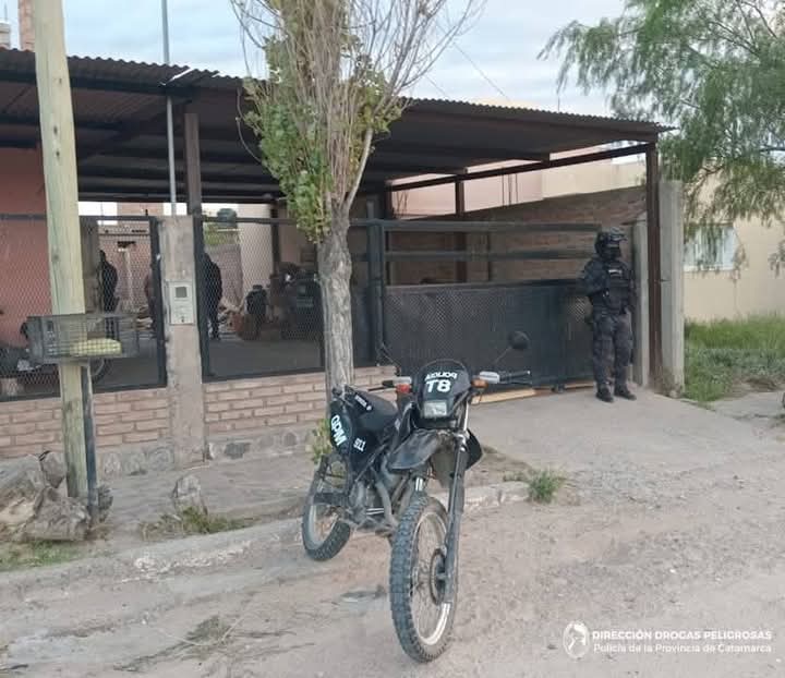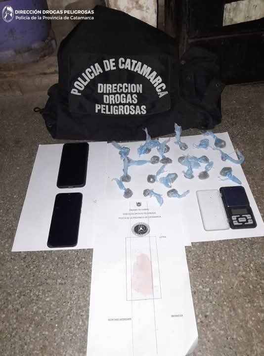 📍Asimismo, en un inmueble del Barrio 80 viviendas, ubicado en calle Ramón Sierralta, de la Ciudad de Tinogasta, Departamento Homónimo, bajo las directivas del Juzgado Federal, los Policías incautaron veintiún (21) envoltorios de plástico de color lila, conteniendo una sustancia herbácea de color verde parduzco, compuesta por hojas tallos y semillas, que acusó un peso de 29 Gr. de probable Marihuana, dos (2) teléfonos celulares, dinero en efectivo y una (1) balanza tipo gramera .
