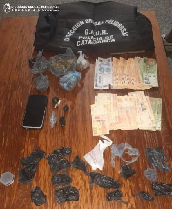 📌En un domicilio ubicado en el Barrio 30 vv., de la Ciudad de Santa Maria, Departamento Homónimo, los investigadores secuestraron 150,4 Gr. de Marihuana, fraccionada en envoltorios de plástico, dos (02) cigarrillos de armado casero con la misma sustancia, un (01) teléfono celular marca Samsung, un (01) picador de metal, y diecisiete (17) recortes de plástico de diferentes tamaños y colores.