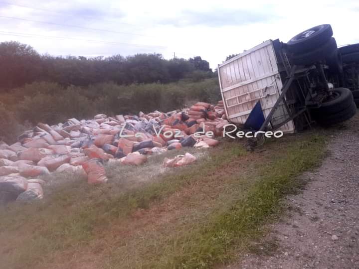 En el lugar, por causas a determinar, volcó un camión que transportaba bolsas de harina.